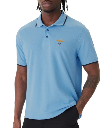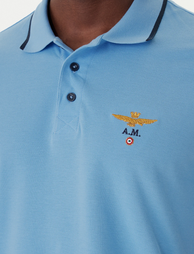 W kolorze błękitnym, naszywka z logo, krótki rękaw, rewelacyjna jakość – wysokiej jakości bawełna.