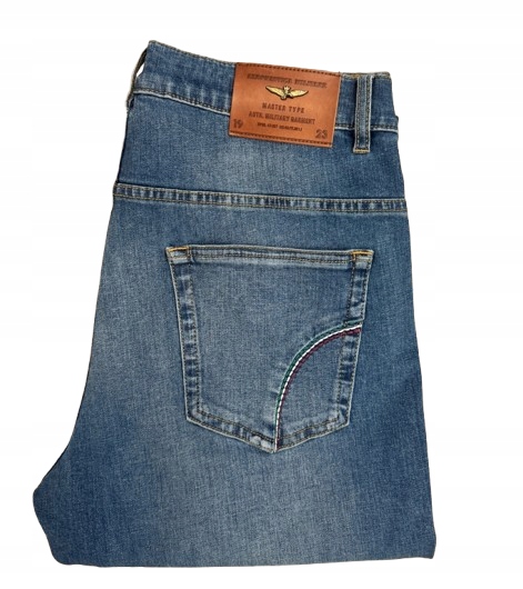 W kolorze niebieskim, delikatne przetarcia, rewelacyjny materiał – najwyższej jakości bawełna, regular fit.