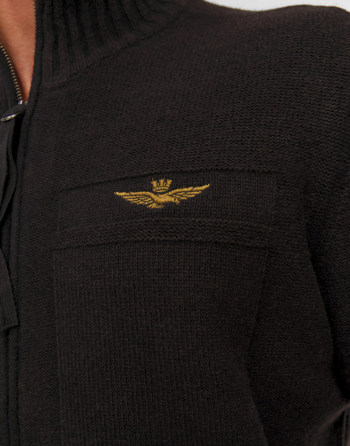 W kolorze czarnym, haftowane logo, rozpinany na zamek błyskawiczny, mieszanka wełna-bawełna, idealny na chłodniejsze dni, miły, przyjemny w dotyku.