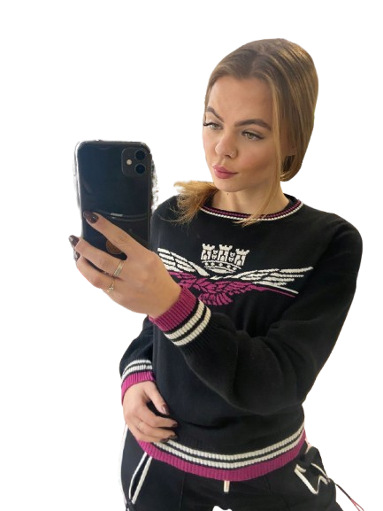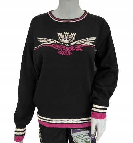 W kolorze czarnym, z kontrastującymi wstawkami logo, bardzo ciepły i miły