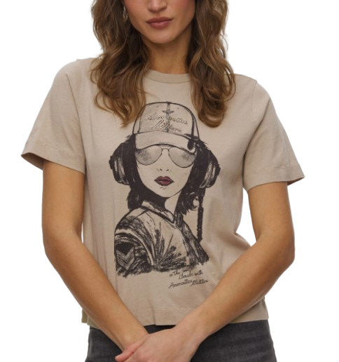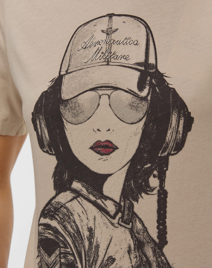 W kolorze beżowym, nadruk z motywem pilotki, regular fit – wygodny i komfortowy krój, delikatny i przyjemny w dotyku materiał.