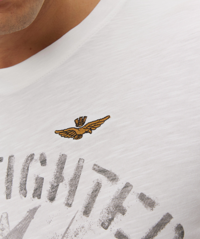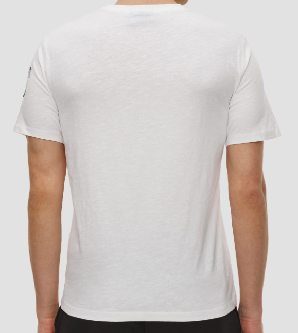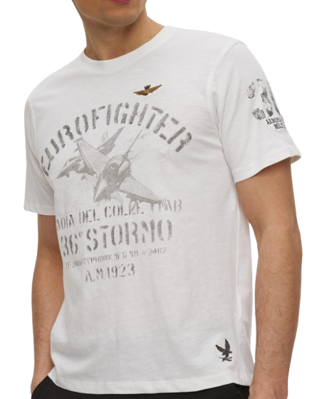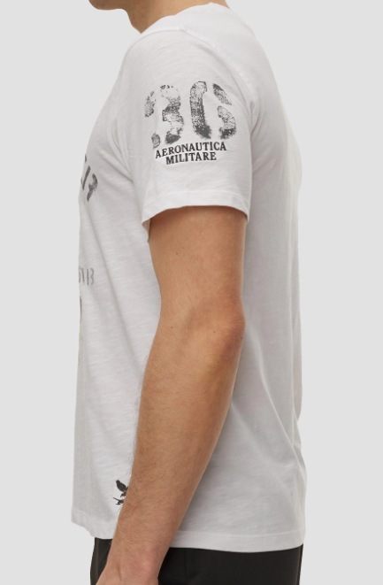 W kolorze białym, wysokiej jakości bawełna, krój regular fit, printy i hafty w militarnym motywie.