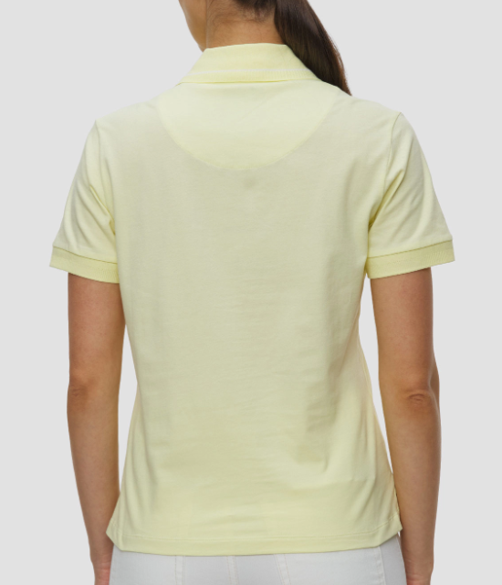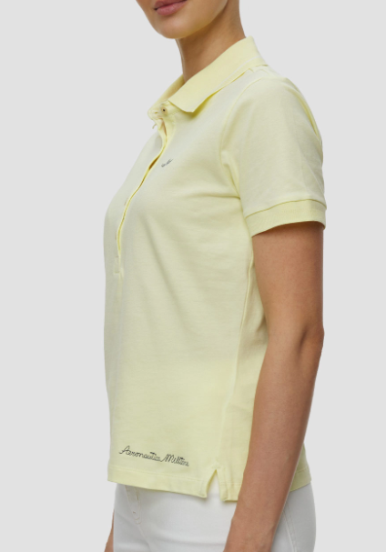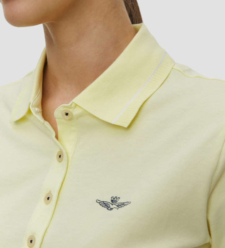W kolorze żółtym, haftowane logo, z modelującym ściągaczem, kołnierzyk z prążkowanym wykończeniem, krój regular, delikatny i przyjemny w dotyku materiał.