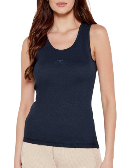 W kolorze granatowym, na ramiączkach, logo, elastyczna, idealna na upalne dni!