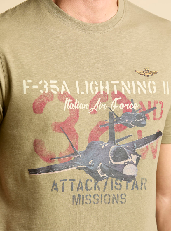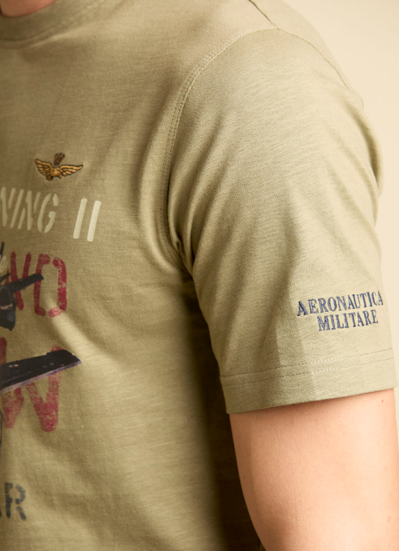 W kolorze zielonym/khaki, print i logo, krój regular fit.