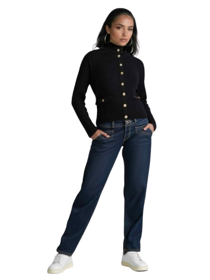 W kolorze czarnym, dopasowany fason, imitacja kieszeni z przodu, prążkowana tekstura materiału, wygodne zapięcie na zatrzaski ułatwia zakładanie i zdejmowanie.