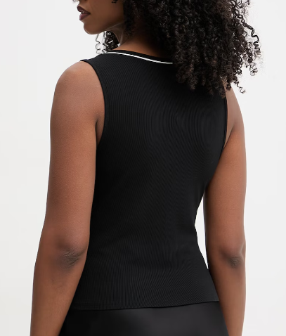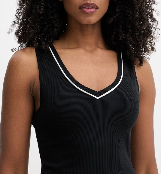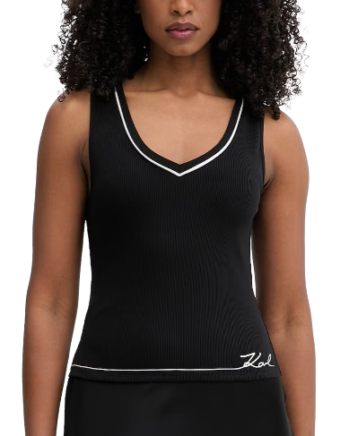 W kolorze czarnym, kontrastowe wstawki i logo, na grubszych ramiączkach, elastyczny materiał, sprzyjający swobodzie ruchów.