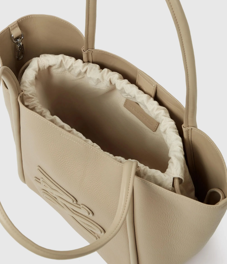 W kolorze beżowym, zapinana na magnes, wewnętrzny organizer, logo, stylowa i wygodna.